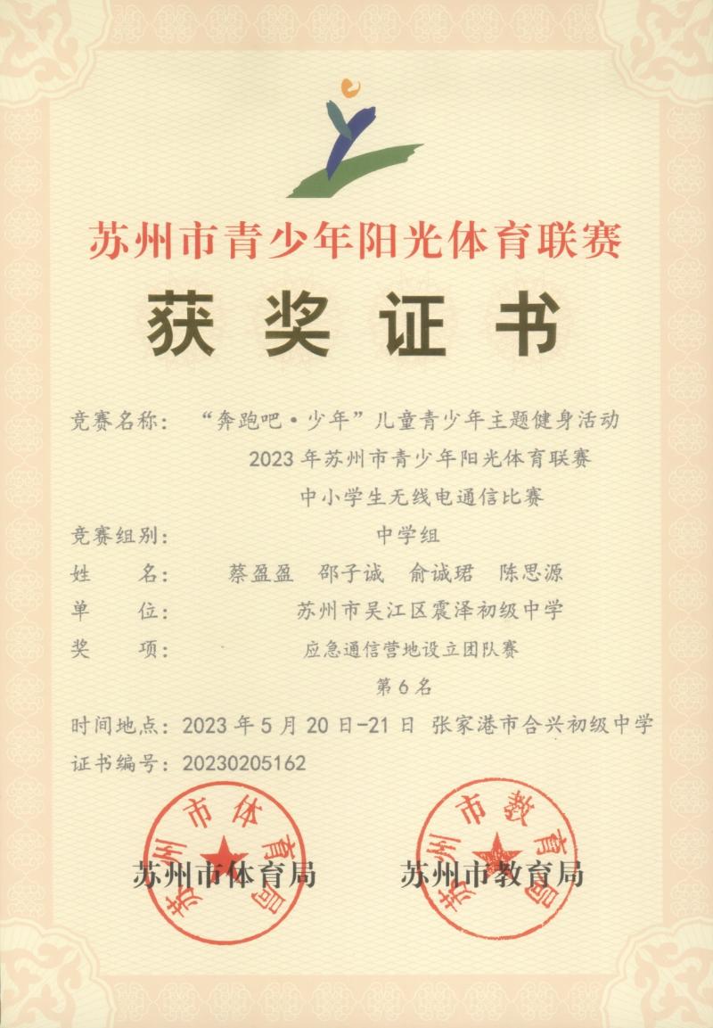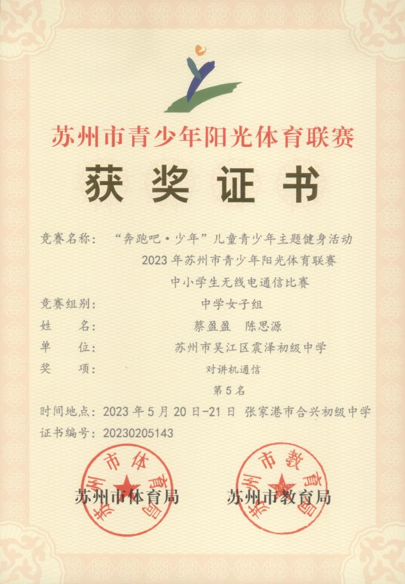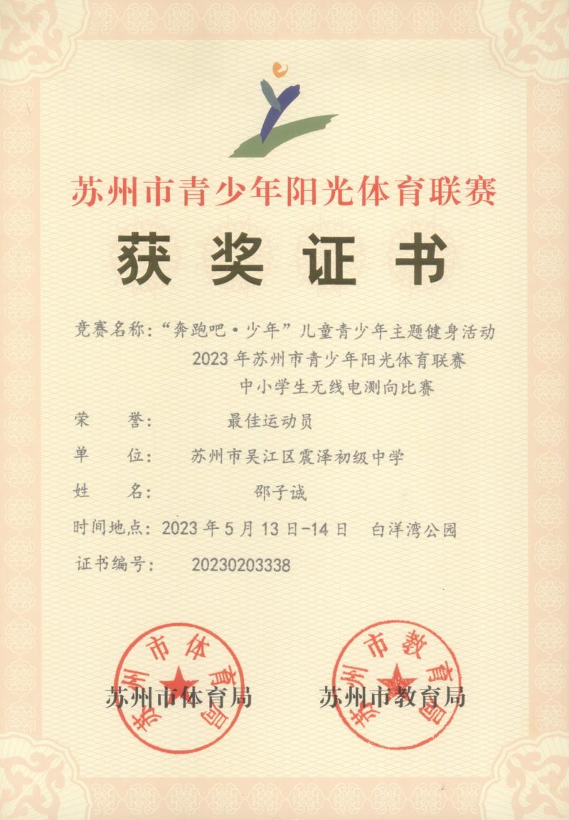 2023年05月,由苏州市教育局、体育局联合主办的“奔跑吧·少年”儿童青少年主题健身活动暨2023年苏州市青少年阳光体育联赛中小学生无线电测向、通信等多个子赛项,