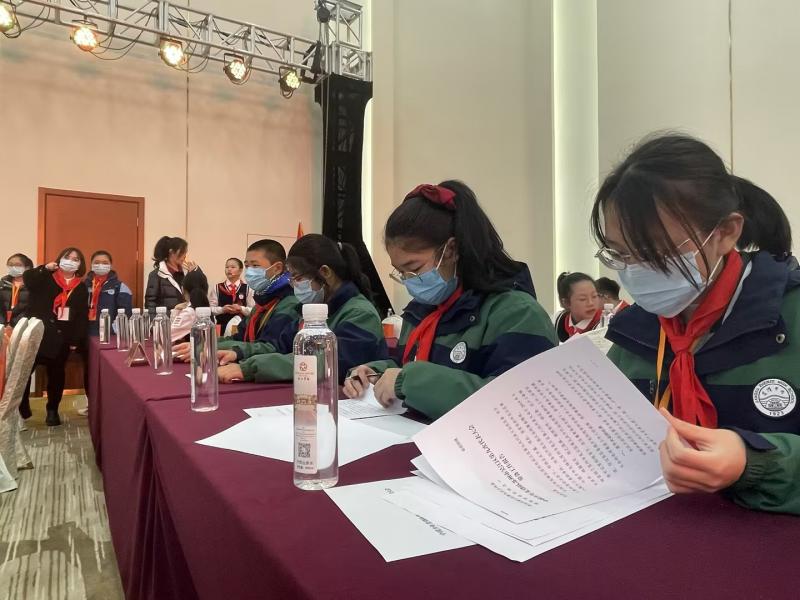 会议中,四位少先队员不仅观看了精美绝伦的演出,也领会了少先队员身上肩负的责任。时代赋予少年无限可能,少年们也当自立自强。同学们认真翻阅着桌上的资料,认真学习本次会议传递的精神。