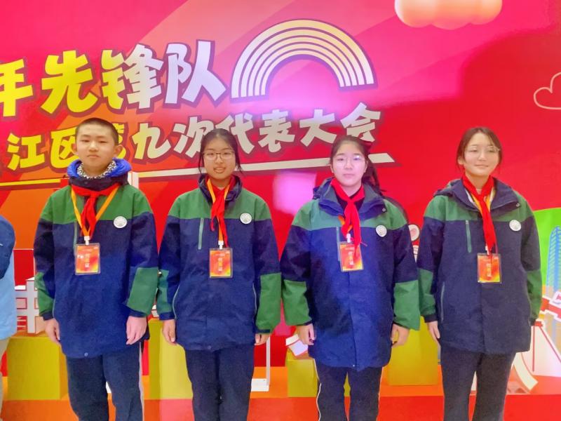 2023年2月10日,震泽初级中学一8班庄亦心、一9班钱麟玥、二7班沈霆辰、二8班许悠然同学,在费轶洋老师的带领下,前往吴江宾馆参加中国少年先锋队苏州市吴江区第九次代表大会。