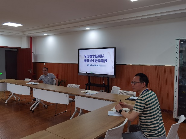 为认真贯彻落实国家教育部《义务教育数学课程标准(2022版)》精神,尽快熟悉与领会新课标要求,提高教师实施新课程的能力,促进学生数学素养的提高,2023年8月30日下午,数学教研组全体成员集中211会议室开展了新课标解读与培训活动。