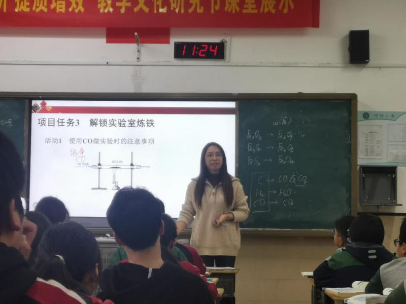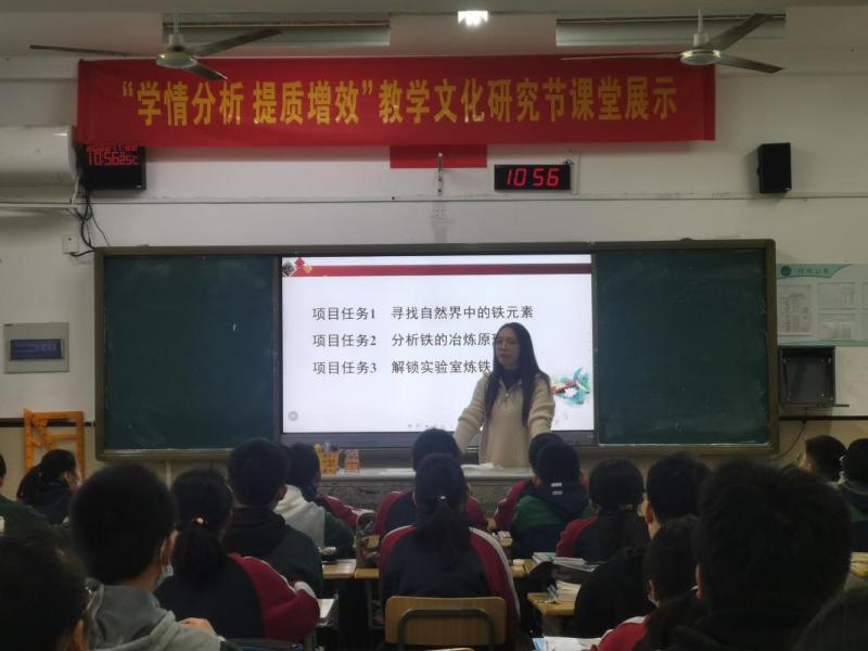 项目化学习(Project Based Learning,简称PBL)是在全球推进学科素养浪潮中涌现出来的一种非常重要的学习方式和课程形态。2023年11月22日,沈菊明老师开设项目化教学公开课《金属矿物 铁的冶炼》,通过项目任务1:寻找自然界中的铁元素、项目任务2:分析铁的冶炼原理、项目任务3:解锁实验室炼铁三个驱动性项目任务带领学生学习铁的冶炼,促进学生学科素养的过程性生成。