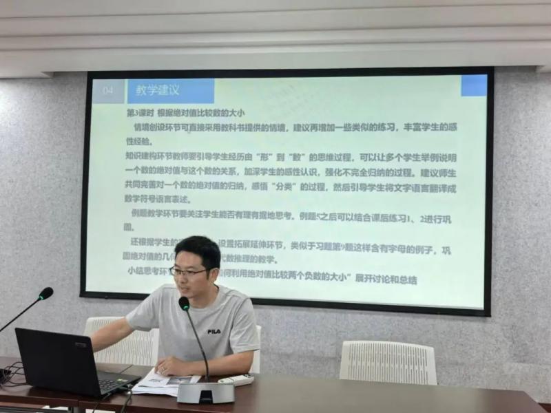 苏州市学科带头人叶锋老师作了精彩点评。在整节课的教学设计中,突出了学生自主探索的过程。执教教师都让学生自己通过观察、思考、归纳和概括得出结论,突出了通过绝对值来比较数的大小这个知识点的形成过程,使学生参与整个教学过程,较自然地经历过程、获取知识,训练思维和培养自主探究的习惯。