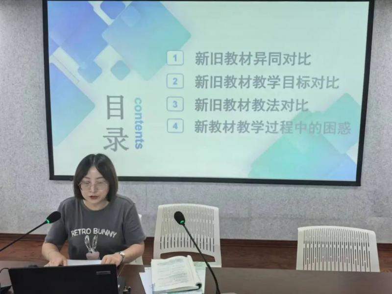 每个学校初一备课组长分别从新旧教材异同对比、教学目标对比、教法对比交流了各自学校备课组的思考,也说出了各自教学过程中需要理顺的困惑。