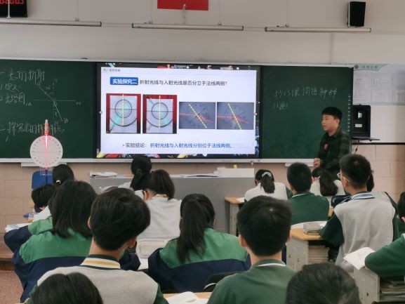 王志强老师和葛昀老师先后开设了《光的折射》一节公开课,邀请了物理组同仁及学校领导观摩了两节课的上课实况。课后物理组组织了集体评课活动,通过开课教师讲述教学设计与实际上课中亮点和缺陷,同组教师点评两节课的优缺点及建议等环节。使开课教师和同科教师都感觉到受益匪浅,表示在今后的教学中要不断学习,不断研究教法和学法,力争把每一节课都上好上精,努力提高自己的教育教学水平。