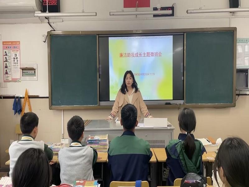 11月5日,我校开展了以“廉洁之风存校园”为主题的廉洁教育微班会活动。班会课准备充分,内容丰富。同学们在班会课上畅所欲言,有的讲述清廉英雄的事迹,有的分享清廉名言警句,有的谈论读清廉书籍的心得体会,有的提出清廉倡议立下清廉誓言。