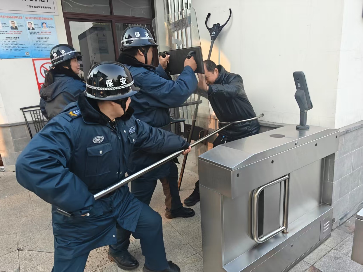 会后,校长室带领总务处、后勤各条线负责人共同巡视校园,进入食堂、教室等各个场所,排查安全隐患,并开展现场防突演练活动。